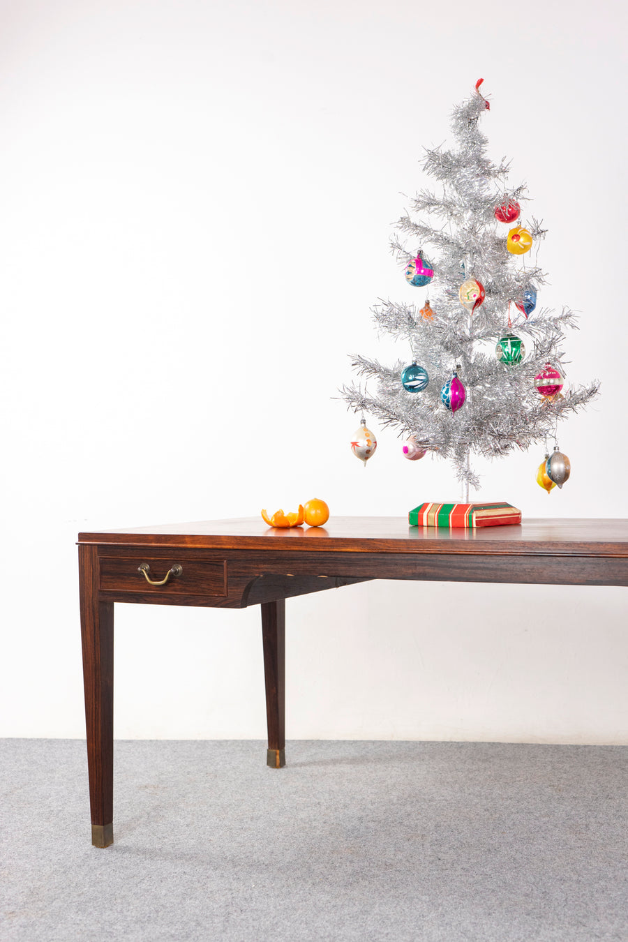 Rosewood coffee table by Fritz Henningsen, circa 1950s. Beautifully book matched veneer top with deep, expressive grain. Dovetailed drawers with br...