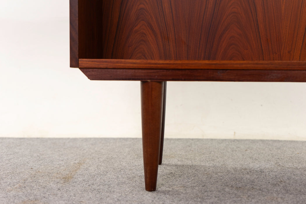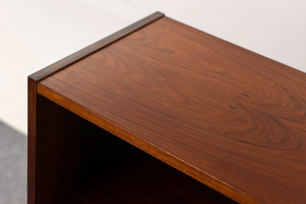 Rosewood Danish bookcase, circa 1960's. Rich toned rosewood veneer with adjustable shelf and removable legs.