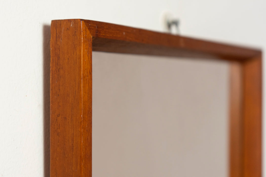 Teak Danish mirror, circa 1960's. Robust frame with prsitine new glass! Made in Denmark Circa 1960's 17.5"w x 41.5"h SHIPPING $80 - $150 - withi...