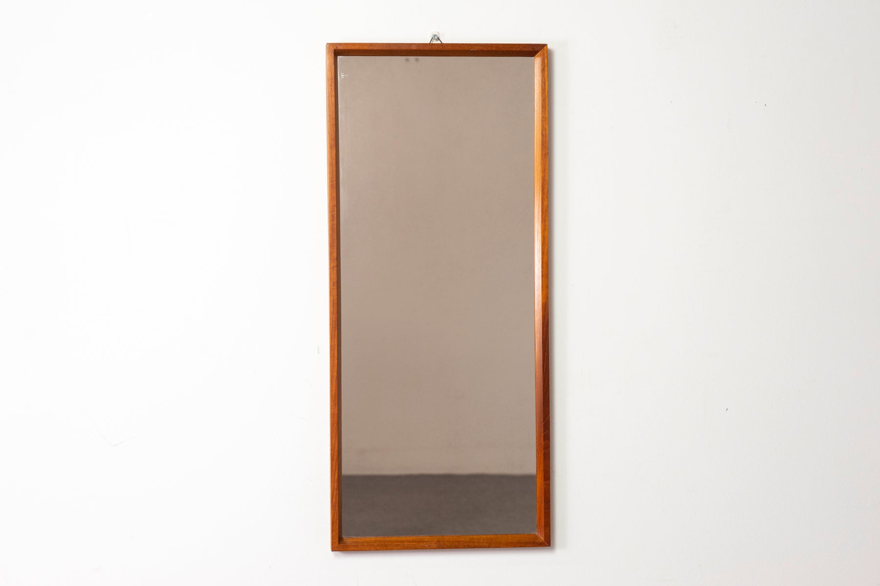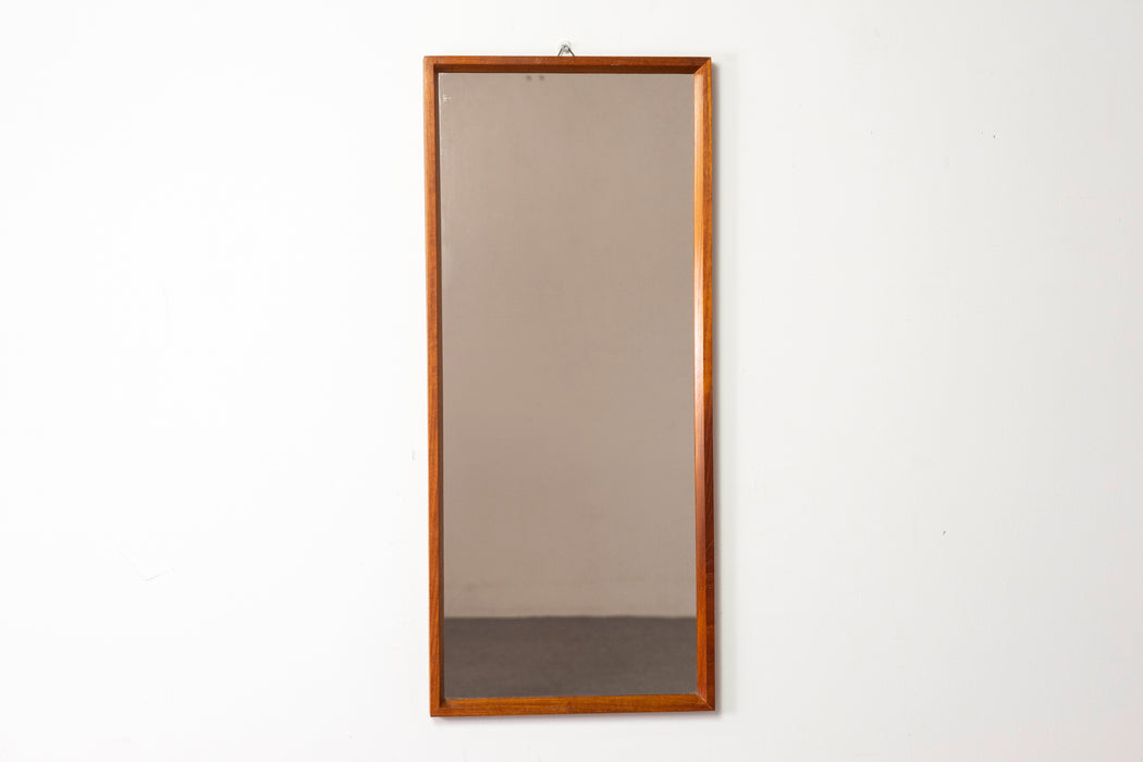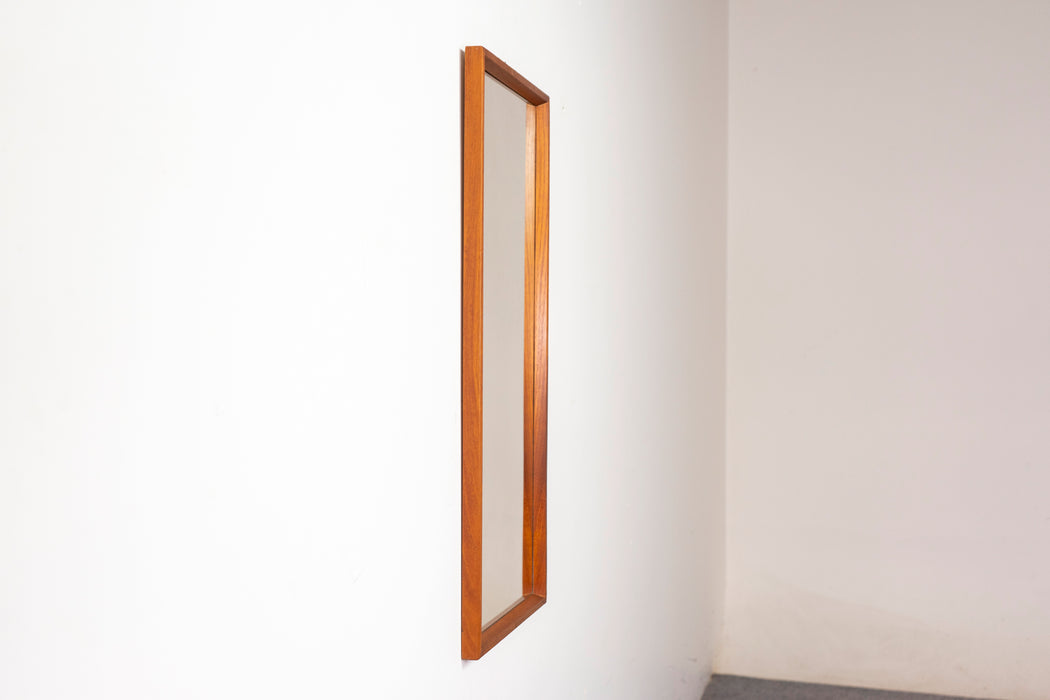 Teak Danish mirror, circa 1960s. Sleek frame with pristine new glass! Made in Denmark Circa 1960's 17.5"w x 38"h SHIPPING $80 - $150 - within B...